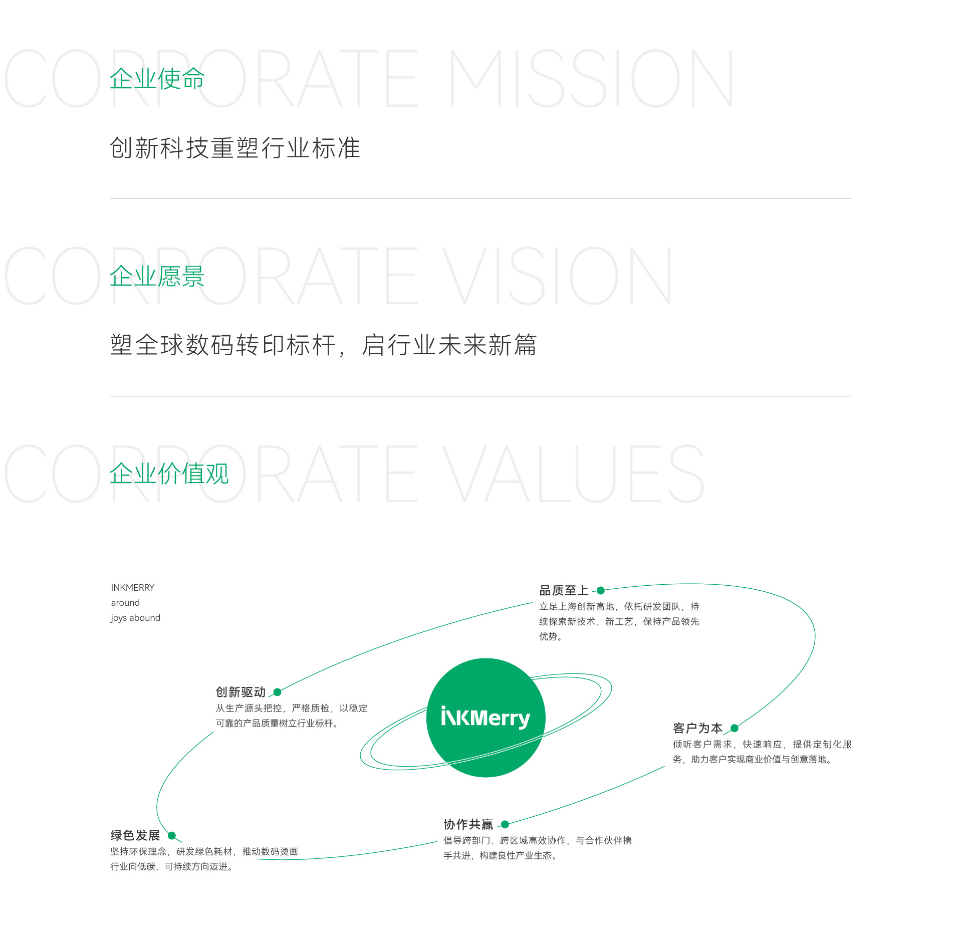 - 上海来印美科技有限公司作为中来能源科技开发集团控股子公司,传承集团全球化战略视野,精准聚焦 DTF 数码烫画膜、烫画纸、专用墨水及配套耗材领域,以技术创新为引擎,整合资金、研发与市场资源,构建集 “研发 - 生产 - 销售” 于一体的一站式数码印刷解决方案体系。